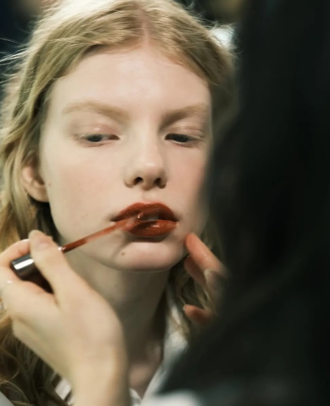 Mùa mốt Thu Đông 2025 cho chúng ta thấy sự trở lại vô cùng mạnh mẽ của vẻ đẹp tự nhiên. Simone Rocha đã dẫn đầu xu hướng makeup với điểm nhấn vô cùng ấn tượng là đôi môi đỏ gạch. Điểm hay chính là nằm ở sự đối lập giữa gương mặt bare skin tinh khiết, màu son trầm ấm tựa như lá phong của mùa thu.