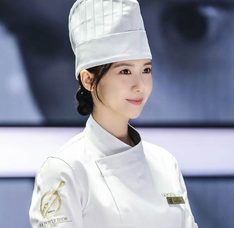Mái tóc của Yoona trong phim thường được búi thấp hoặc buộc gọn kết hợp cùng mũ đầu bếp màu trắng đặc trưng. Đây là tạo hình không những tôn lên được vẻ chuyên nghiệp mà còn rất hài hòa với không gian hoàng cung. Mái tóc tối giản khá dễ thực hiện góp phần tạo nên một diện mạo xuyên không vô cùng cá tính.
