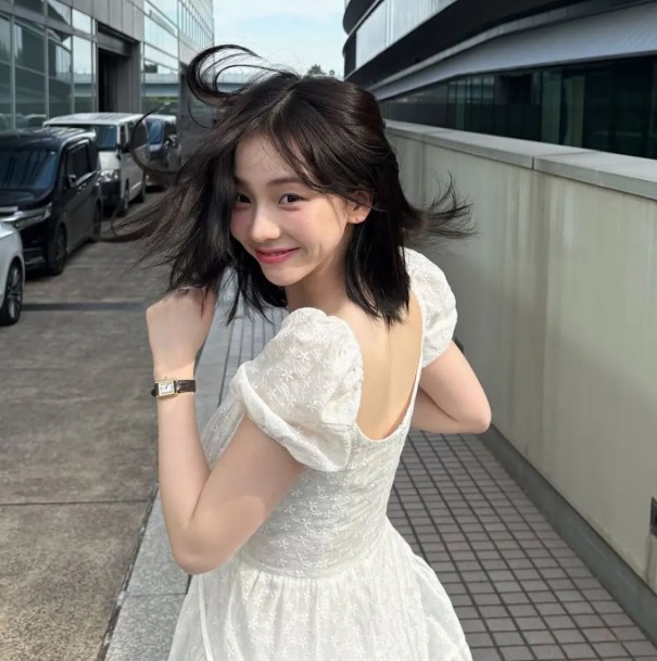 Khác với hình ảnh sắc sảo, quyến rũ quen thuộc mỗi khi đứng trên sân khấu, Karina lần này chọn phong cách thanh thoát và tự nhiên. Cô xuất hiện trong chiếc váy trắng tinh giản, đôi giày Mary Jane cổ điển và kiểu tóc bob uốn nhẹ phần đuôi – tất cả hòa quyện tạo nên vẻ đẹp nhẹ bẫng nhưng vẫn tràn đầy sức hút. Dưới ánh nắng buổi chiều vàng óng, làn da của Karina càng trở nên rạng rỡ, khiến mỗi khung hình đều mang hơi thở của sự thơ mộng và bình yên.