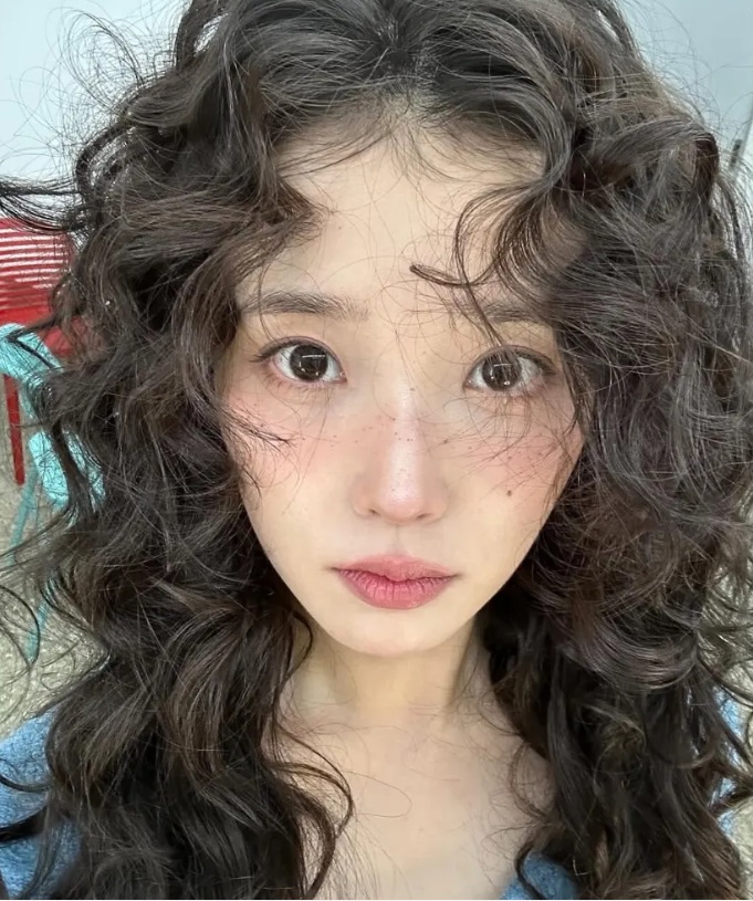 Lần này, lựa chọn kiểu tóc xoăn hippie đã giúp cô truyền tải một cảm giác hoàn toàn khác: phóng khoáng, tinh nghịch nhưng vẫn thoang thoảng sự ngọt ngào đặc trưng. Những lọn xoăn nhỏ và dày được uốn đều từ chân đến ngọn tạo nên độ bồng bềnh tự nhiên, giúp gương mặt IU thêm trẻ trung và rạng rỡ. Không ít người hâm mộ chia sẻ rằng cú chuyển mình này khiến họ cảm nhận được năng lượng tự do và đầy sức sống – điều mà kiểu tóc hippie vốn luôn mang lại.