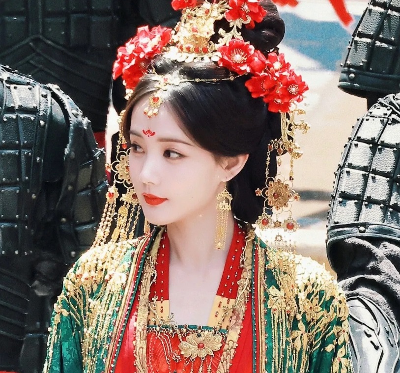 Trong phim, Lý Nhất Đồng xuất hiện với mái tóc búi và tạo khối chặt, được điểm xuyết bằng đóa hoa mẫu đơn đỏ rực. Đây là biểu tượng của vẻ đẹp quý phái và vượng khí. Phía trước cô sử dụng miếng kim hoàn hình phượng bằng vàng được đặt trên đỉnh đầu, kết hợp với dây tua rua rủ mềm mại. Tất cả tạo nên một tổng thể cân đối và uyển chuyển. Bộ trang sức của cô bao gồm vòng cổ nhiều tầng, hoa tai dài, chuỗi tua kim tuyến đính ngọc đỏ không những lộng lẫy mà còn làm nổi bật lên khí chất tân nương. Điều này giúp tạo được hiệu ứng thị giác khiến cho tạo hình của nữ diễn viên trở nên thanh tú hơn.