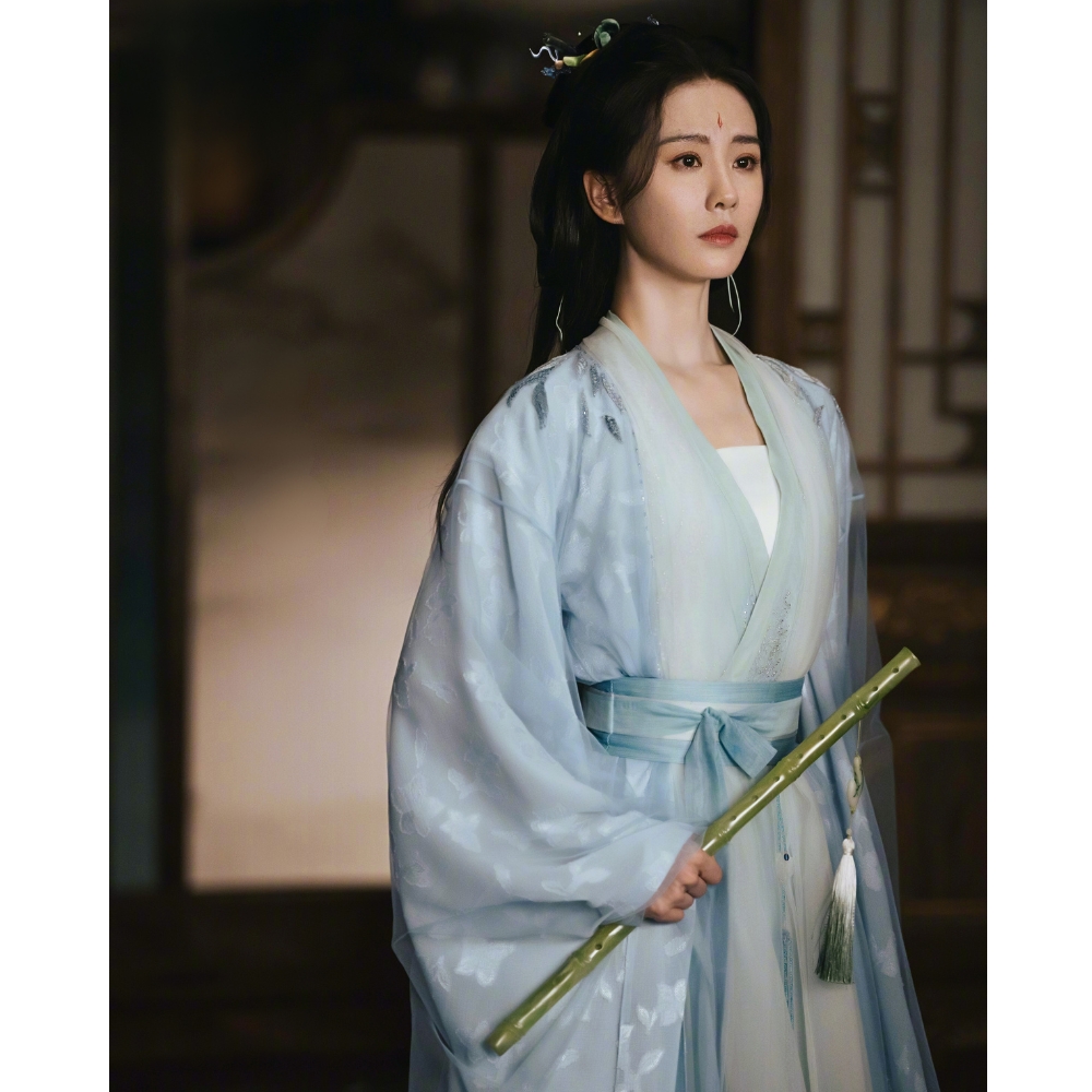 Với kiểu tóc xõa uốn sóng nhẹ đan xen những lọn tết nhỏ cùng phụ kiện đính ngọc trai và pha lê không những tinh xảo còn giúp tôn lên được khí chất vương giả của nhân vật. Ngoài ra, bột trang phục màu lam phấn cùng họa tiết thêu nổi giúp tôn lên làn da trắng sứ cùng thần thái băng lãnh mà thanh thuần. Đây chính là những dấu ấn làm nên thương hiệu Lưu Thi Thi.