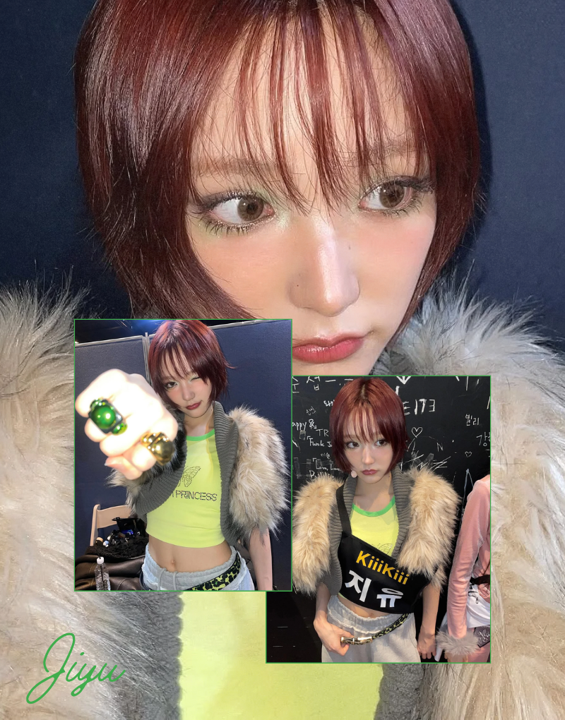 Nếu như Haum là hiện thân của tinh thần Y2K thời thượng thì Jiyu lại là một nhân tố vô cùng nổi bật khi diễn giải hoàn hảo khía cạnh boho-chic. Điều đáng nói là tạo hình của nữ idol 18 tuổi từ lúc debut đến nay chủ yếu là xoay quanh ý tưởng về tinh linh, cây cối,…